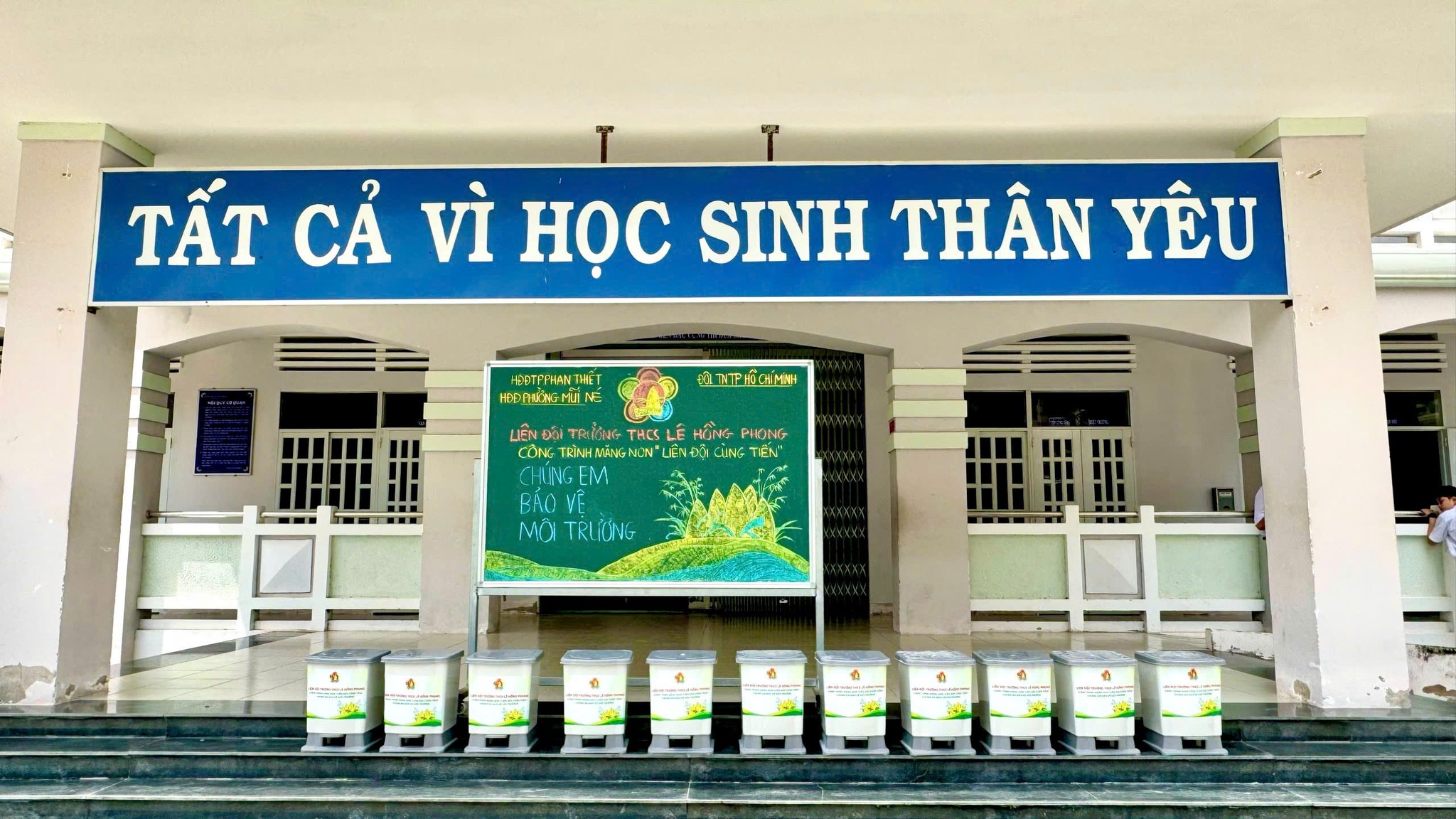 Hòa trong không khí phấn khởi chào mừng thành công Đại hội Cháu ngoan Bác Hồ trường THCS Lê Hồng Phong, hướng tới Đại hội Cháu ngoan Bác Hồ cấp thành phố và Đại hội Đảng bộ các cấp, Liên đội Trường THCS Lê Hồng Phong đã thực hiện công trình măng non ý nghĩa: đồng bộ thùng rác cho 25 phòng học, với tổng số tiền trị giá 3.875.000đ
